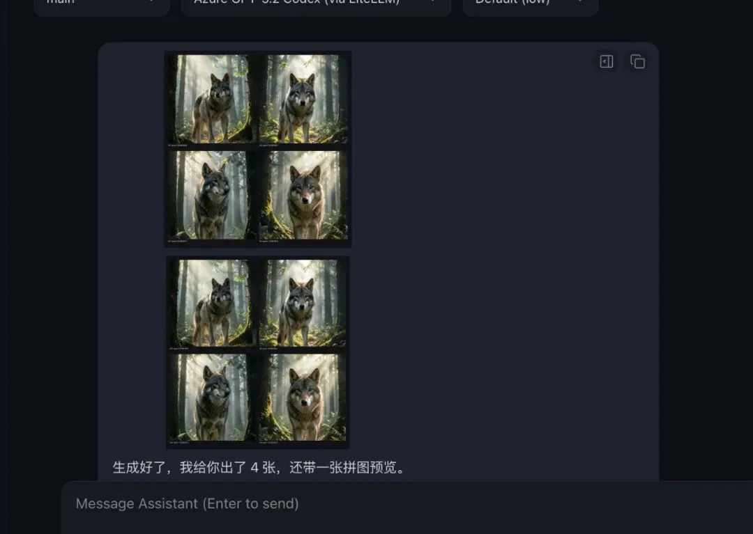 3)接入案例(提示词: 帮我生成在森林里的大灰狼图片)