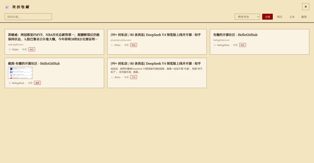 1. 各平台收藏夹各自独立,缺乏统一管理的地方 -