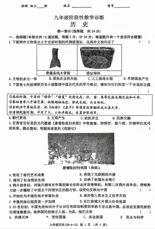26年西安五大名校中考模拟卷,免费下载 26年五大名校中考模拟卷免费领取,陕西省内考中考生都可领取,尤其是想拔高的同学,可以见见名校题型! 西工大四模数学试卷 西工大四模历史试卷 需要电子版可以直接扫码添加免费领取