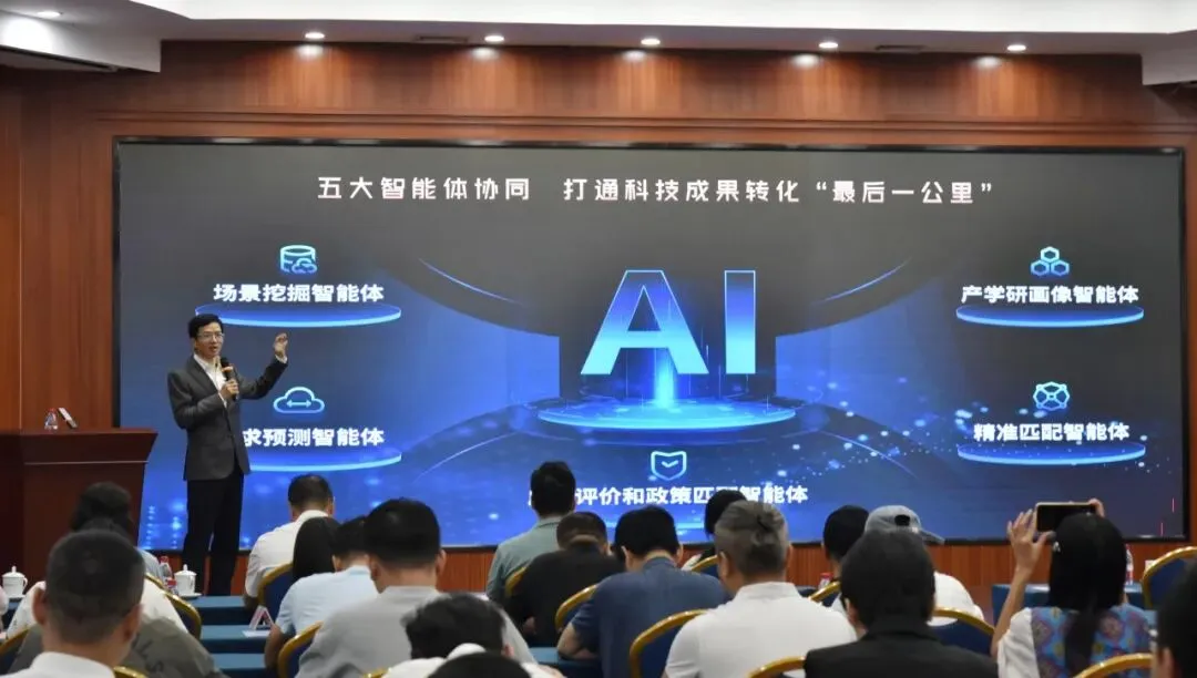 广州大学李进教授以《AI重塑全链条成果转化服务体系》为题,展示“桂科智”在需求挖掘、供需匹配等方面的核心优势。