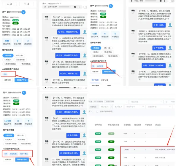 4、自动语音外呼,分类。根据提前录制上传的话术录音,和客户进行多轮对话,支持批量导入,自动拨打,高效过滤筛选意向用户。然后根据客户对话的内容,进行自动分类。节省低效人力成本。