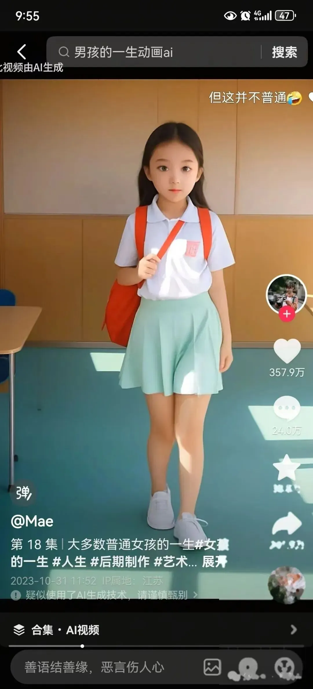 抖音上有个叫”Mae”的账号,一条《大多数普通女孩的一生》直接涨粉16万。