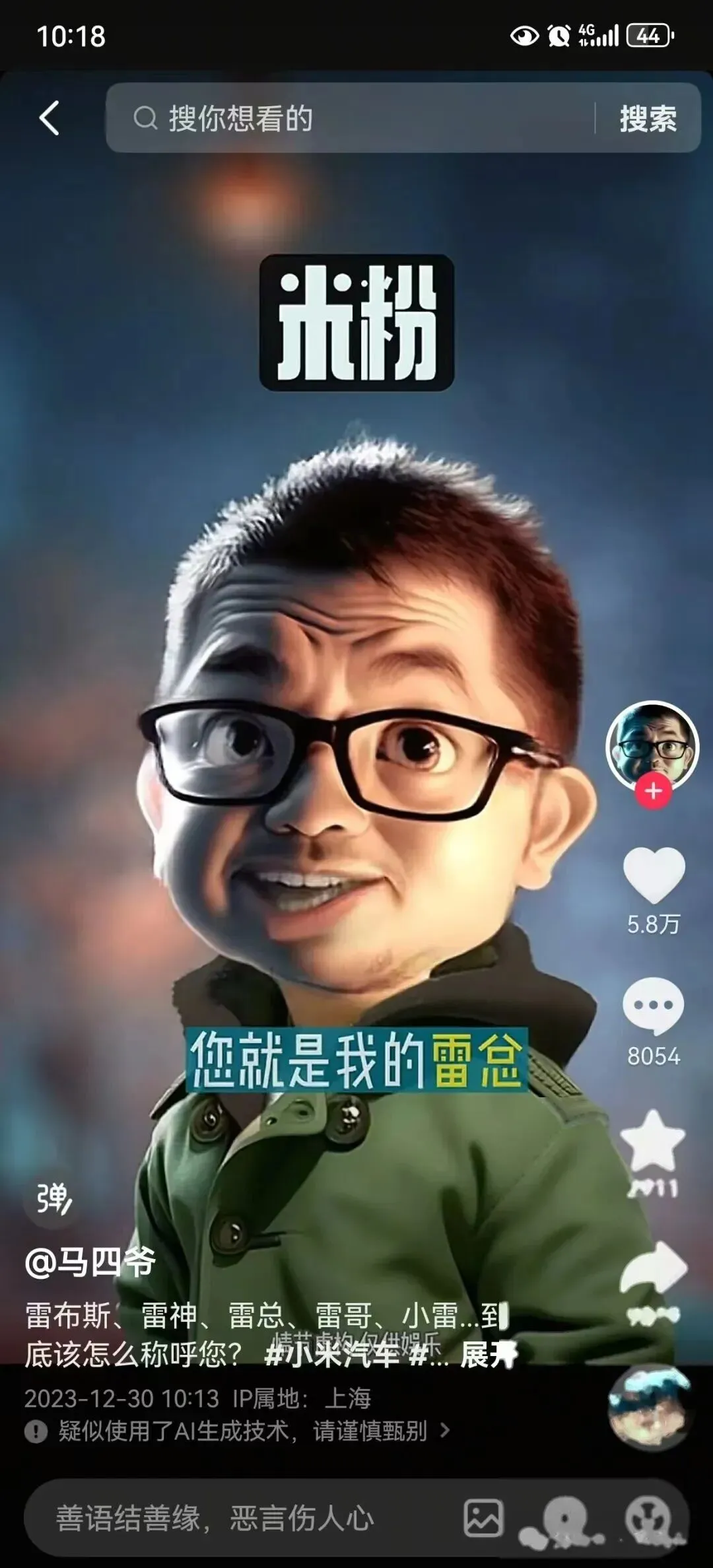 抖音”马四爷”,3.4万粉丝,获赞29.7万,单条播放超14万。制作成本低,但传播效果炸裂。