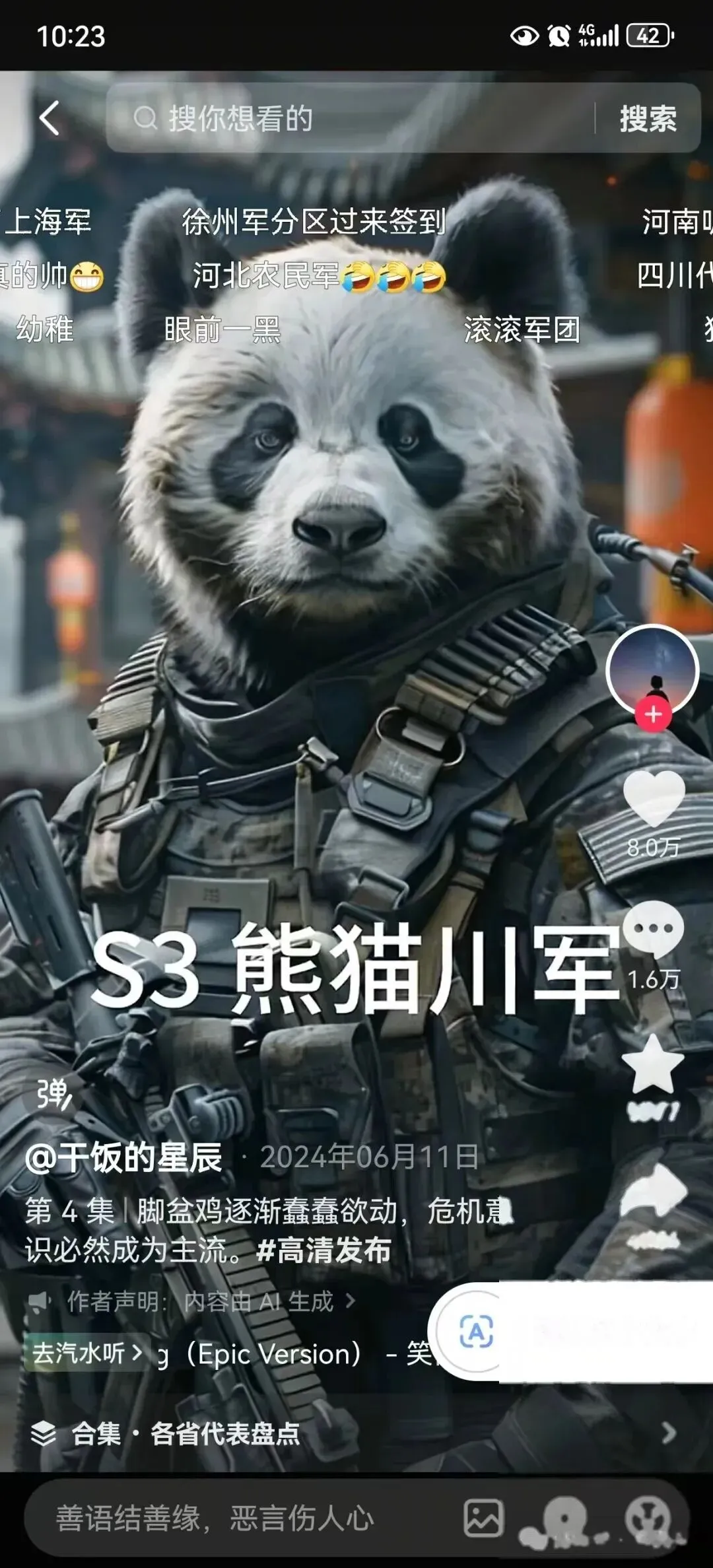 军事热点+爱国情怀+熊猫IP,这个组合天然自带流量。用kimi拆解结构,ChatGPT生图,haiper生成视频,成本极低。