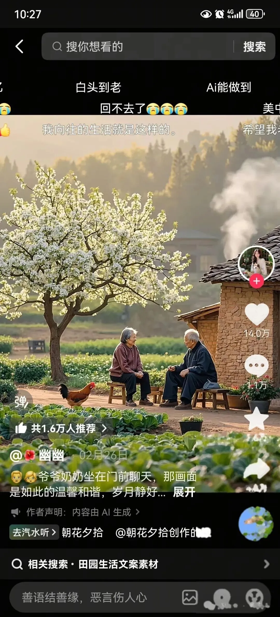 用奇域AI生成古画,配上爆款文案,新中式+幽默的组合,有账号做到了70万粉丝。
