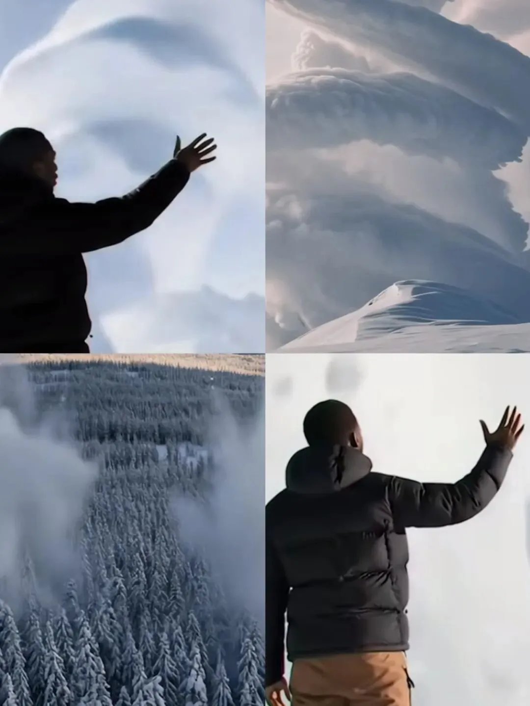所谓不可能实现,是指广告中的很多场景在现实中并不存在,比如反重力地貌、超现实天气景象、梦幻的画面转场。这则广告利用AI的虚幻特质,没有刻意遮掩AI制作痕迹,以诗意的方式生动演绎了Moncler从山野走向都市的品牌发展历程。