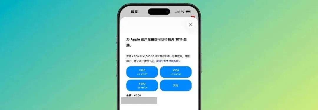 苹果官方 App Store 优惠活动,不要错过! 苹果今天App Store国区上线了充值加赠活动,可获得额外10%加赠,数量有限,领完即止。 充值从5-1000元,就是你如果充值50,就可以得到55。 需要注意的是,每个人Apple账户只可享受一次充值优惠。 充值有哪些用处?App、iCloud、Apple Music 如果你有充值的需求,不要错过。 可以到App Store-右上角头像,可以才看到充值选项。