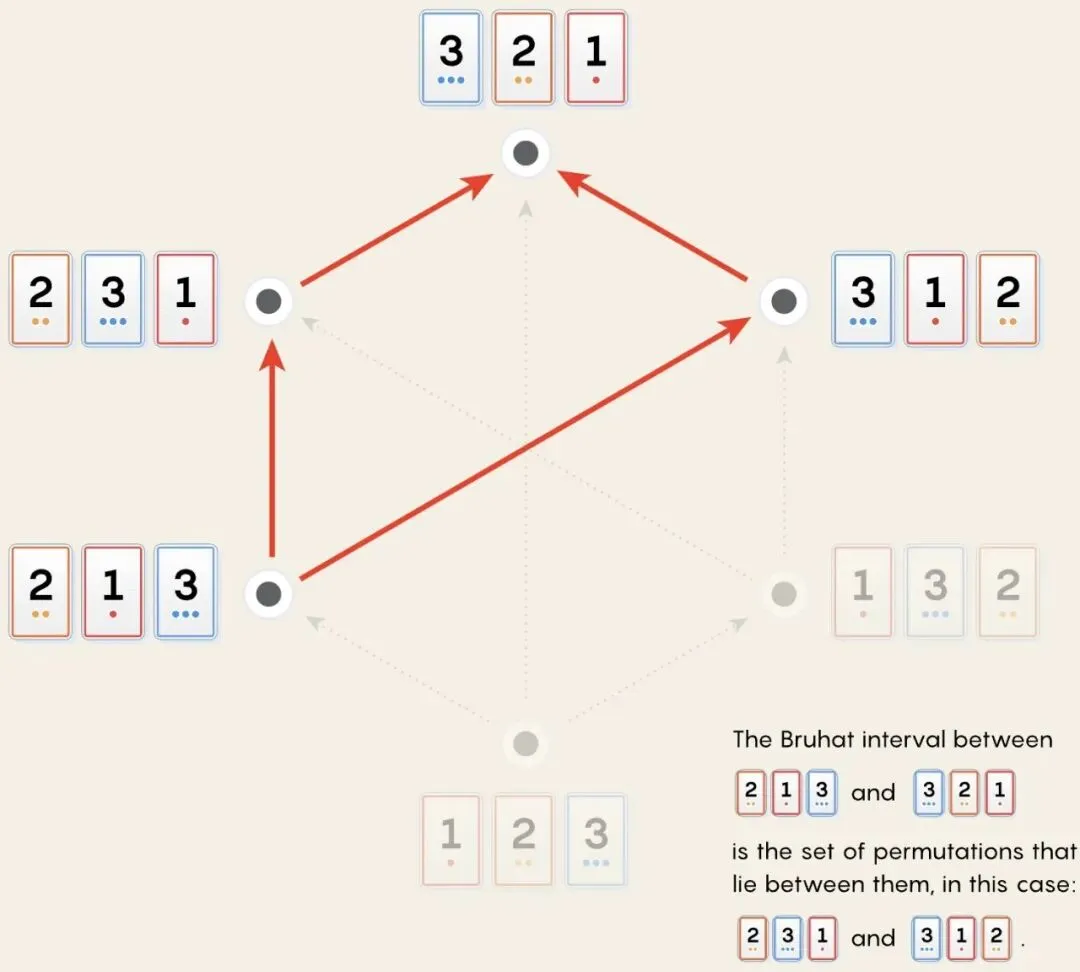 数学家们尝试研究置换群中排列之间的 Bruhat 序及区间。由于大置换群的情况极为复杂,他们借助 AI 系统 AlphaEvolve 分析了数十个置换群。AI 生成了约 50 行 Python 代码,并意外发现当排列数为 2 的幂时,代码可简化为 5 行,且对应的 Bruhat 区间形成了超立方体(hypercube)结构。