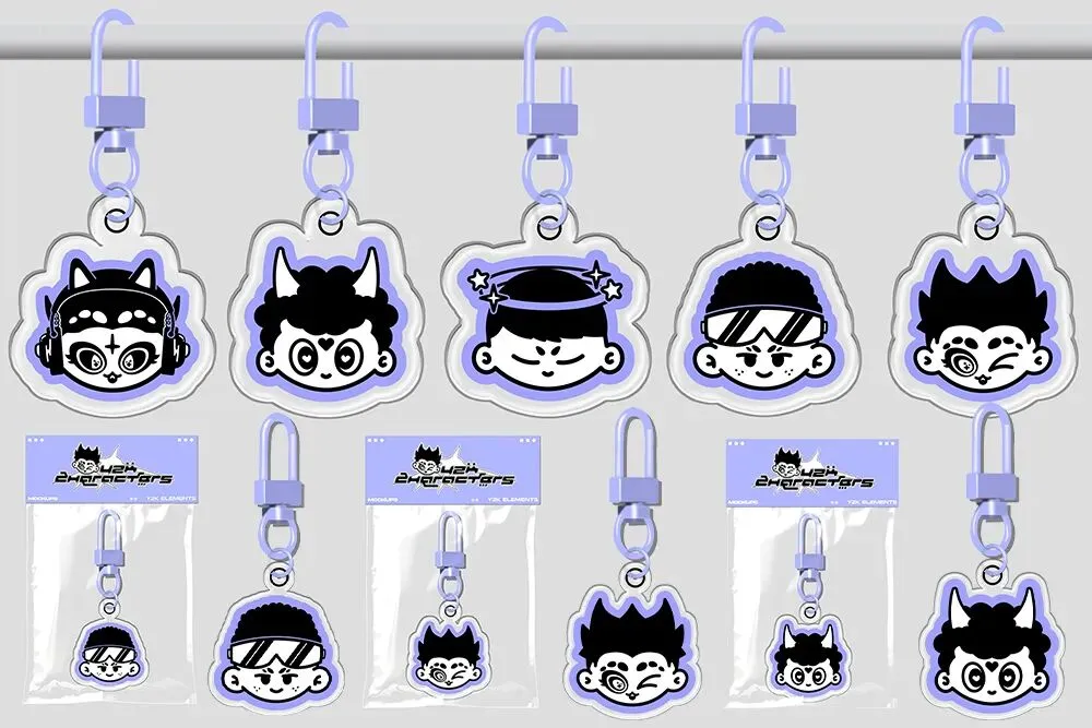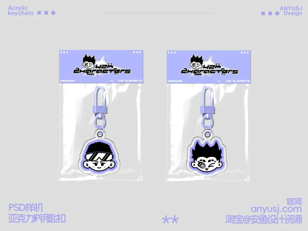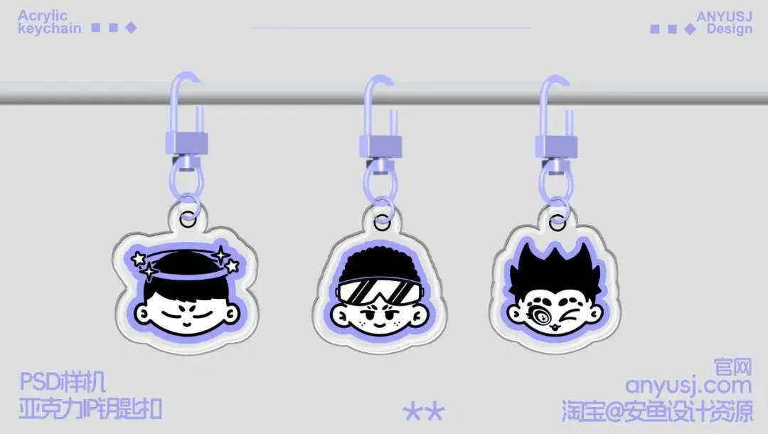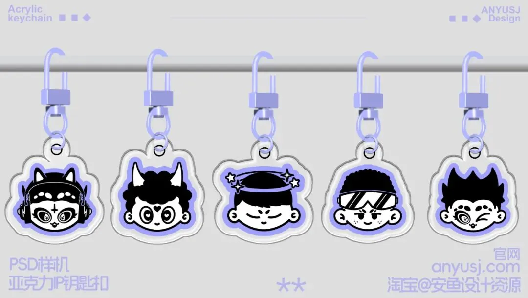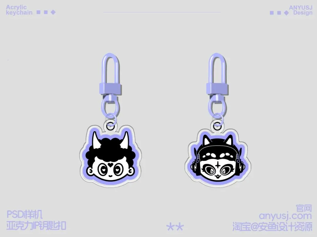 【免费下载】6款极简异形自定义形状亚克力钥匙扣挂件IP形象文创周边产品PSD效果图样机Acrylic keychain
