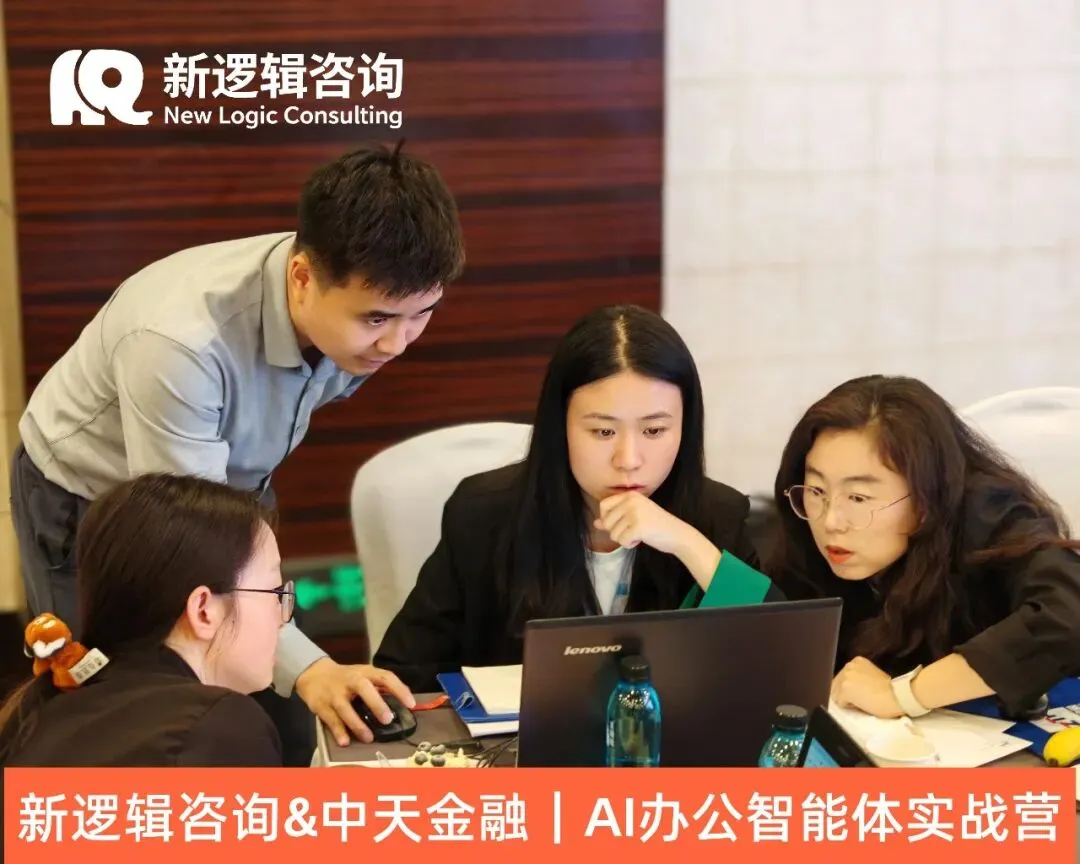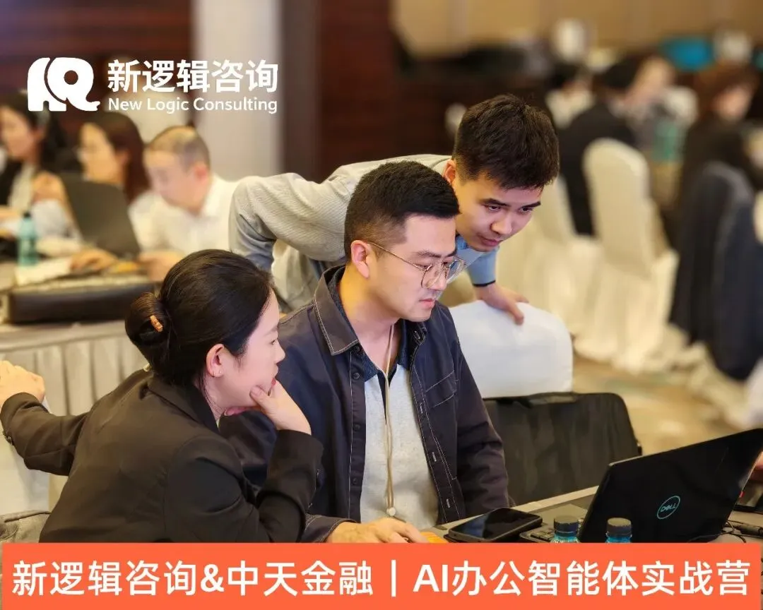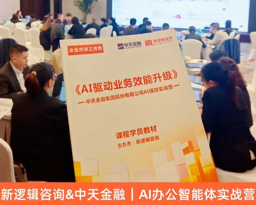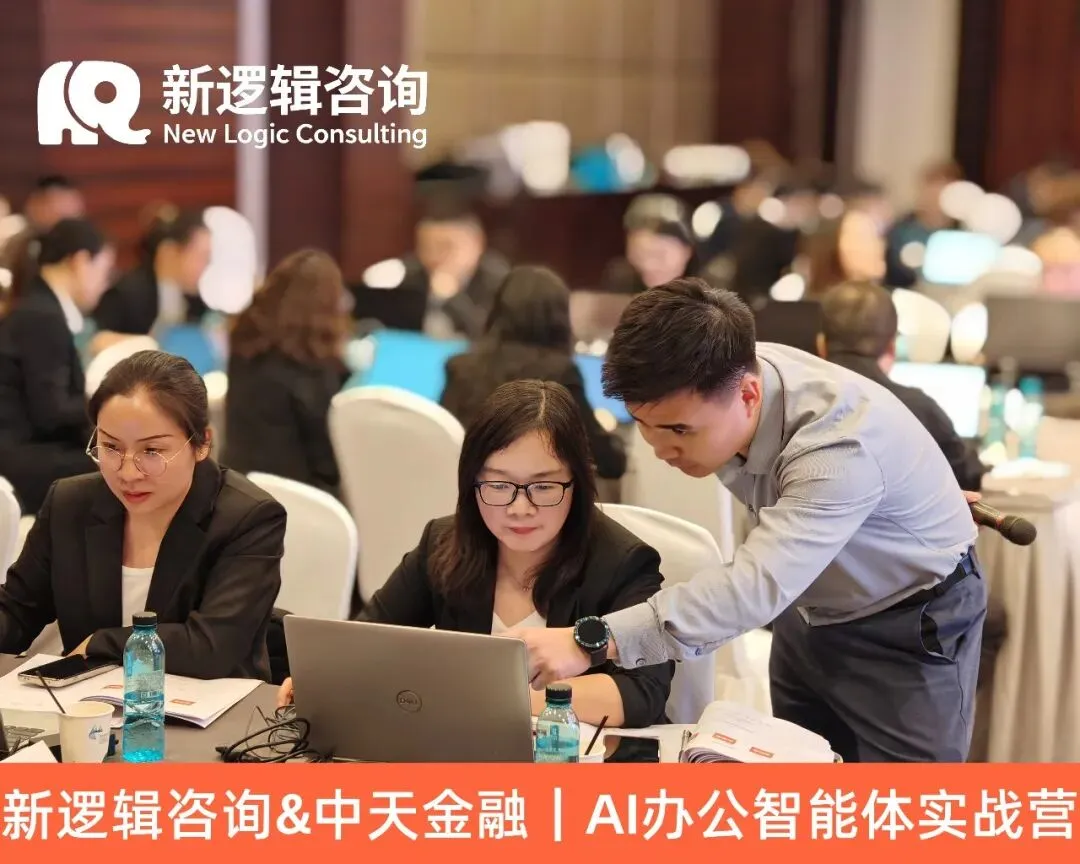 新逻辑咨询根据中天金融的需求:“借助AI工具提升工作效率,掌握AI智能体搭建,打造企业各岗位AI员工”,开展了主题为《AI办公智能体实战营》企业内训工作坊。