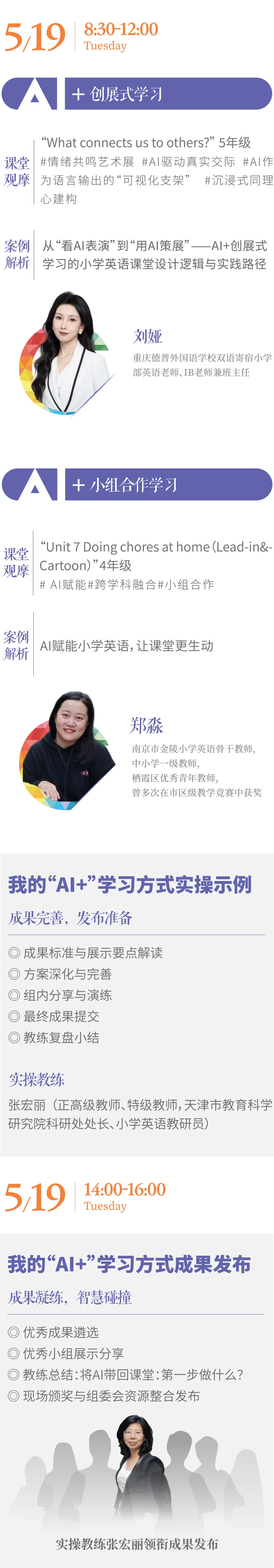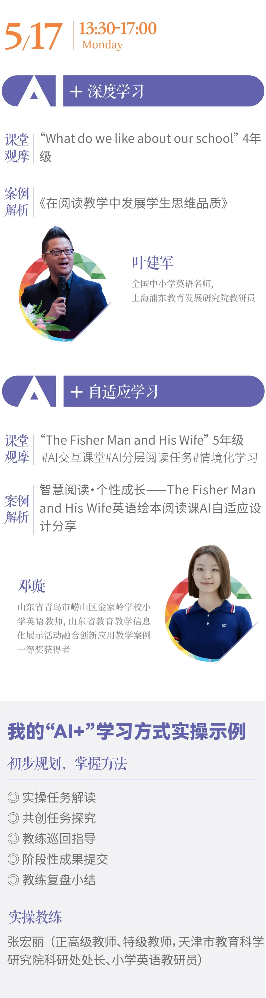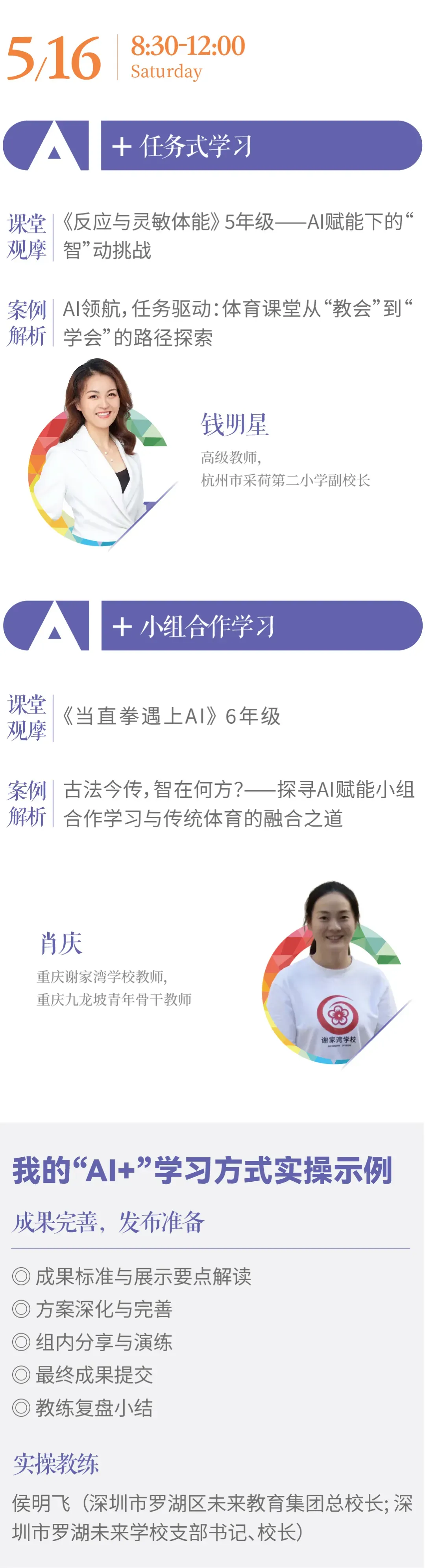 两大学科沉浸式观摩课例:5月14-16日(体育)、5月17-19日(英语),邀请全国名师及具有前沿实践的学校团队,立体呈现技术如何“穿透”学科。