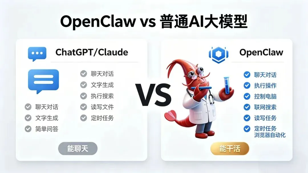 三、OpenClaw vs 普通 AI,区别到底在哪?