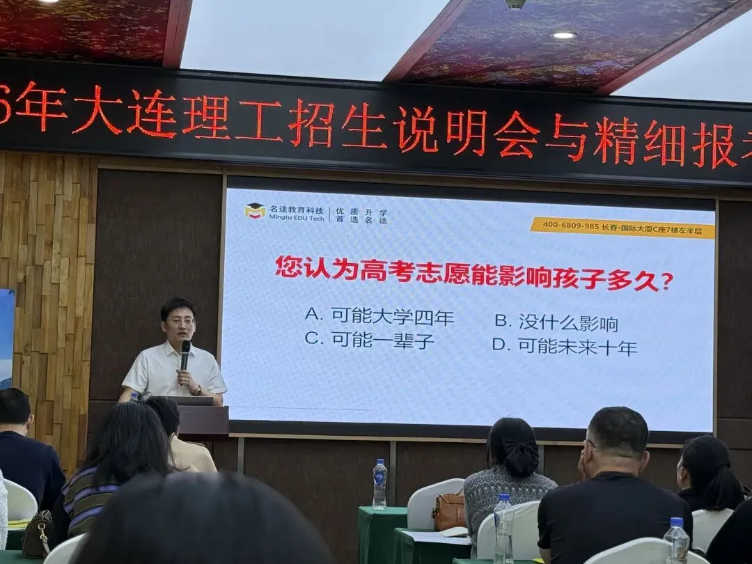 为助力考生精准把握升学方向,明晰名校招录规则,今日,名途教育升学规划团队携手大连理工大学,成功举办2026招生说明会与精细报考经验分享会!现场人气爆棚,座无虚席,众多家长齐聚一堂,共探名校升学之路。