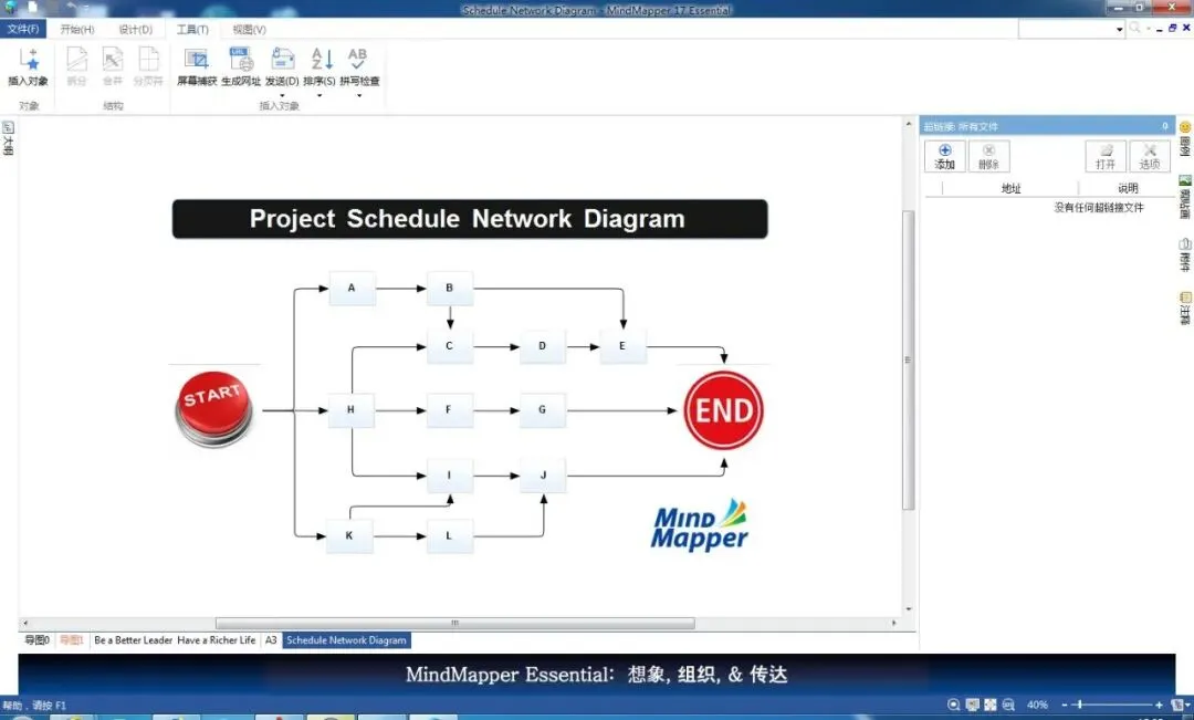 值得肯定的是提供甘特图功能,记录任务进度和完成率,适用于项目管理。不得不承认MindMapper 17支持插入表格、图表、方程和特殊字符。我们都明白应用场地和环境公司与项目管理,帮助团队提高沟通效率,明确目标和任务分配, 学校与培训,用于笔记整理、知识管理,升级学习能力, 个人发展,规划个人目标、管理日常任务,助力个人成长。