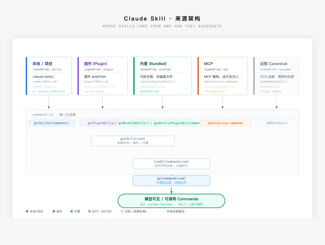 Skill 有本地、内置、第三方(插件、Mcp)、远程这几个来源。