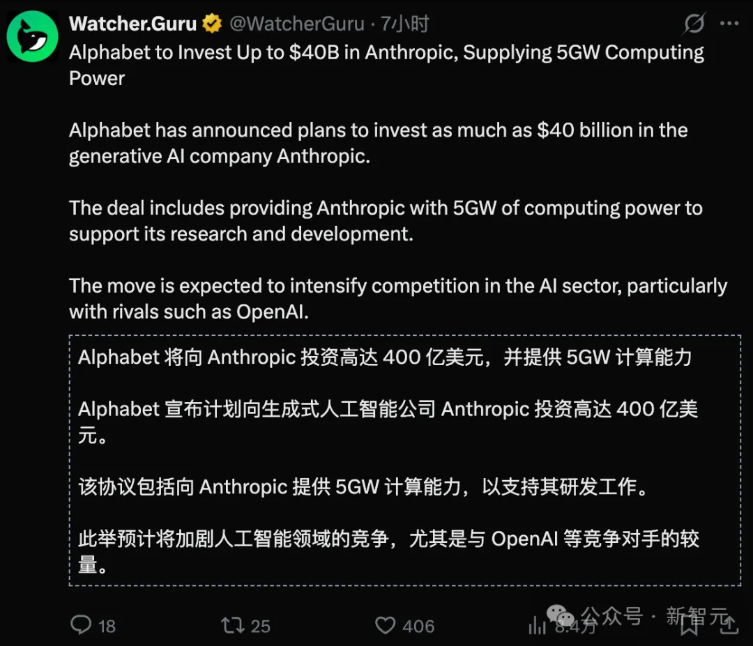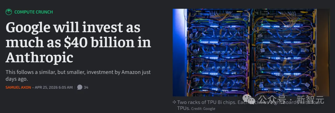 【新智元导读】谷歌豪掷400亿美元加注Anthropic,自家Gemini正面对垒的「敌人」。当Claude年化收入一年暴涨30倍冲到300亿,当算力成为AI下半场唯一硬通货,与其用Gemini硬刚,不如把对手变成TPU最大买家。