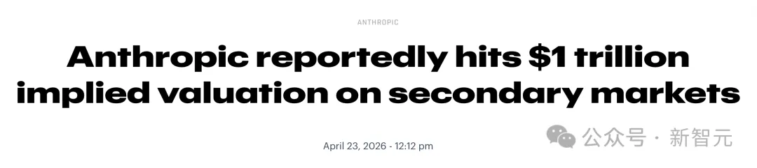 第二个:Anthropic在二级市场的隐含估值已经飙到1万亿美元。