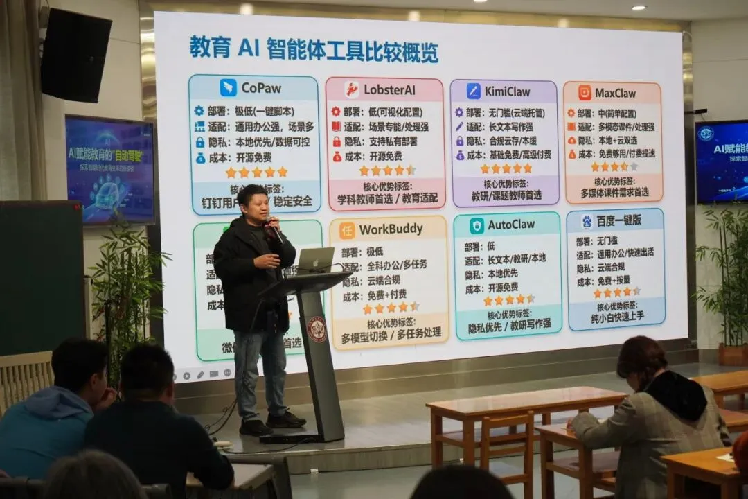 马勇副教授围绕爆火的AI工具龙虾Openclaw,与教师深度交流,拆解其核心优势、适用人群、潜在风险及运行流程,强调其操作便捷、适配中小学教学,无需复杂技术即可上手,同时提醒其内容准确性不足等局限,引导教师理性使用、避免过度依赖。
