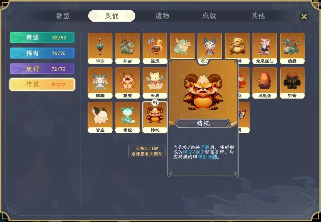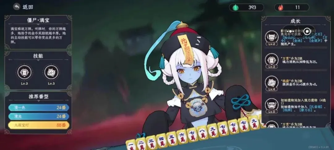 游戏关卡是随机Rogue的类型,玩家有一定的路线选择,可以选择神秘事件,商店等,获得灵俑,遗物,增加牌面的初始底分,角色技能能量,番数,金钱获得效率等,然后构筑出非常强力的胡牌套路,越到后期越爽快,一局胡出天量的分数。
