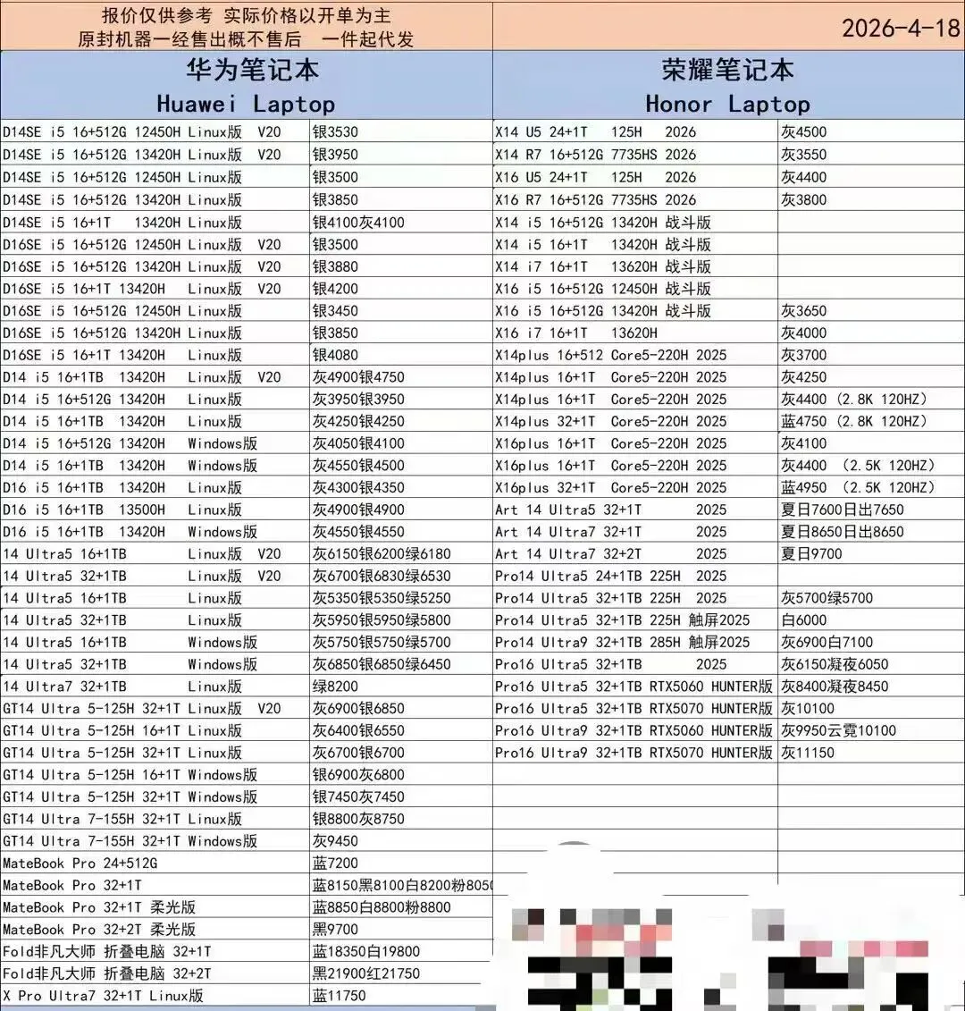 【2026年4月25日报价】深圳全新安卓手机、平板等产品批发报价