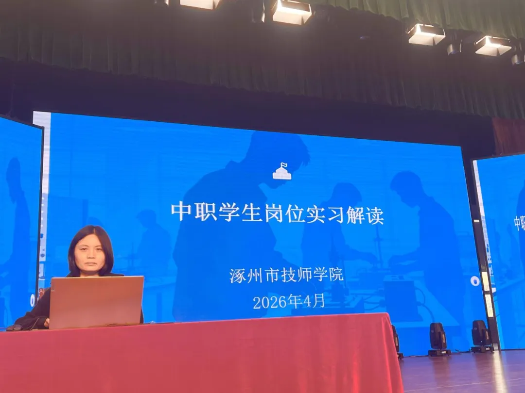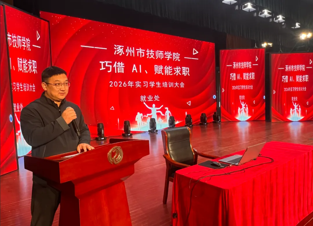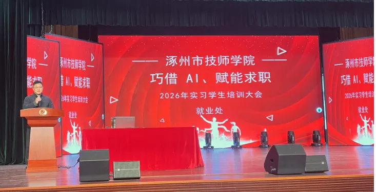 近日,涿州市技师学院成功举办“巧借AI 赋能求职”2026年实习学生培训大会。本次大会旨在帮助学生明确实习规范、提升求职竞争力,通过搭建校园与职场的衔接桥梁,助力学生顺利开启职业发展新篇章。