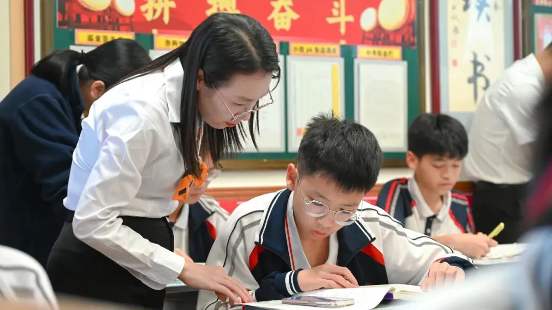 日常巡课中,潘校长时常深入课堂一线,全程关注AI智慧课堂的教学开展情况,与老师们实时交流教学思路、共同优化教学方法,齐心协力把每一节日常课堂都上得扎实、高效。在常态化的AI智慧课堂上,老师们可以借助平台及时掌握每位学生对知识点的掌握情况,整体答题情况与常见易错点也能清晰把握,错题整理、随堂练习的完成情况直观可见,让教学指导更有针对性。课堂上,老师们穿梭在学生之间,围绕课本重点、易错题型耐心解答、细致引导,结合实时学情开展个性化辅导。