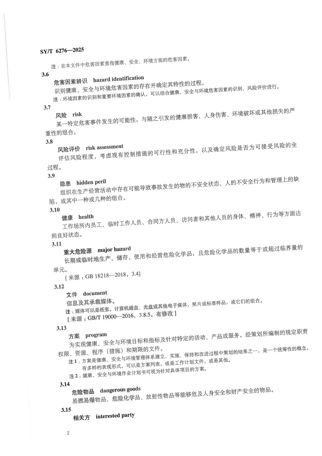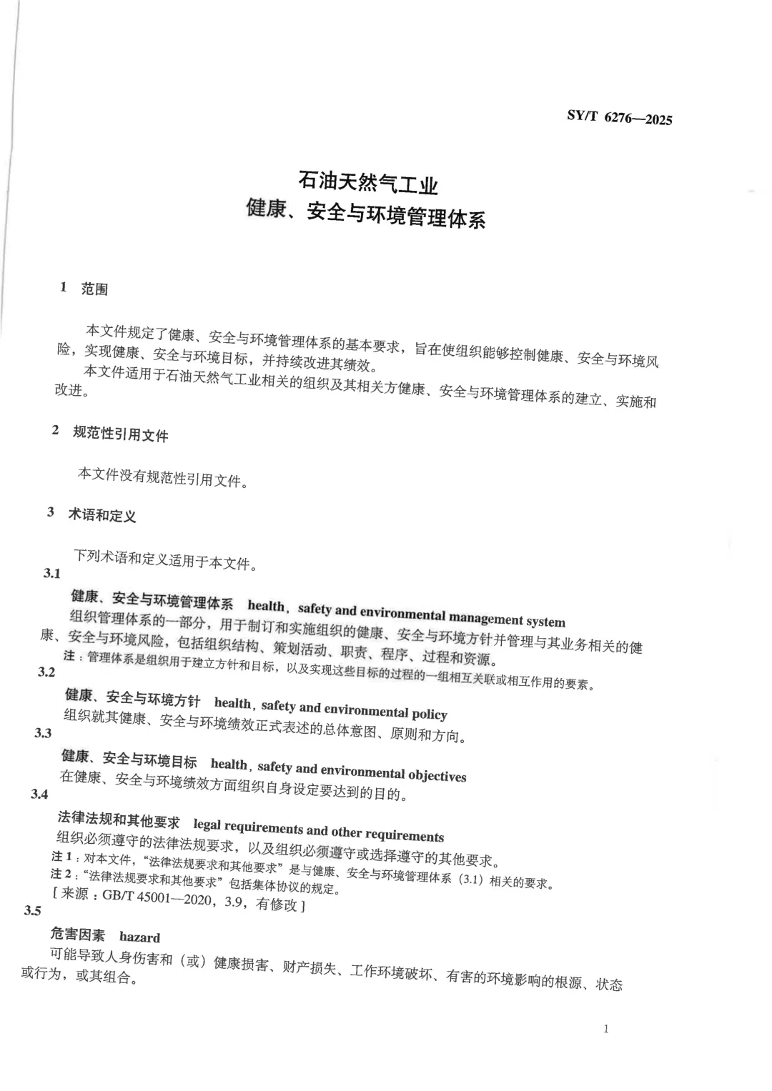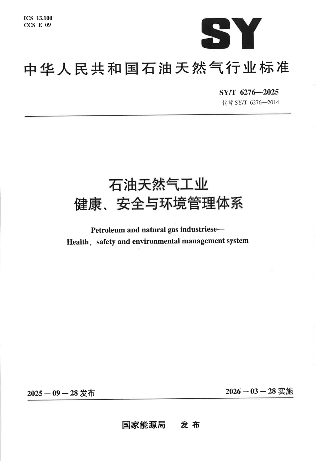 可下载 | SYT 6276-2025 石油天然气工业 健康、安全与环保管理体系