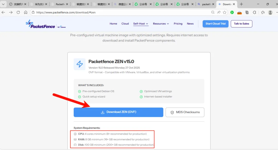 https://www.packetfence.com/download/#packages,可以直接下载ISO镜像进行安装,或OVF文件直接导入到虚拟机。