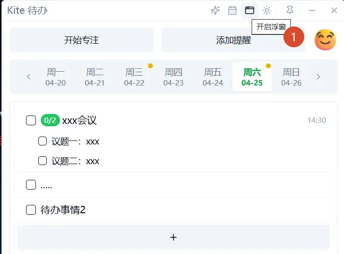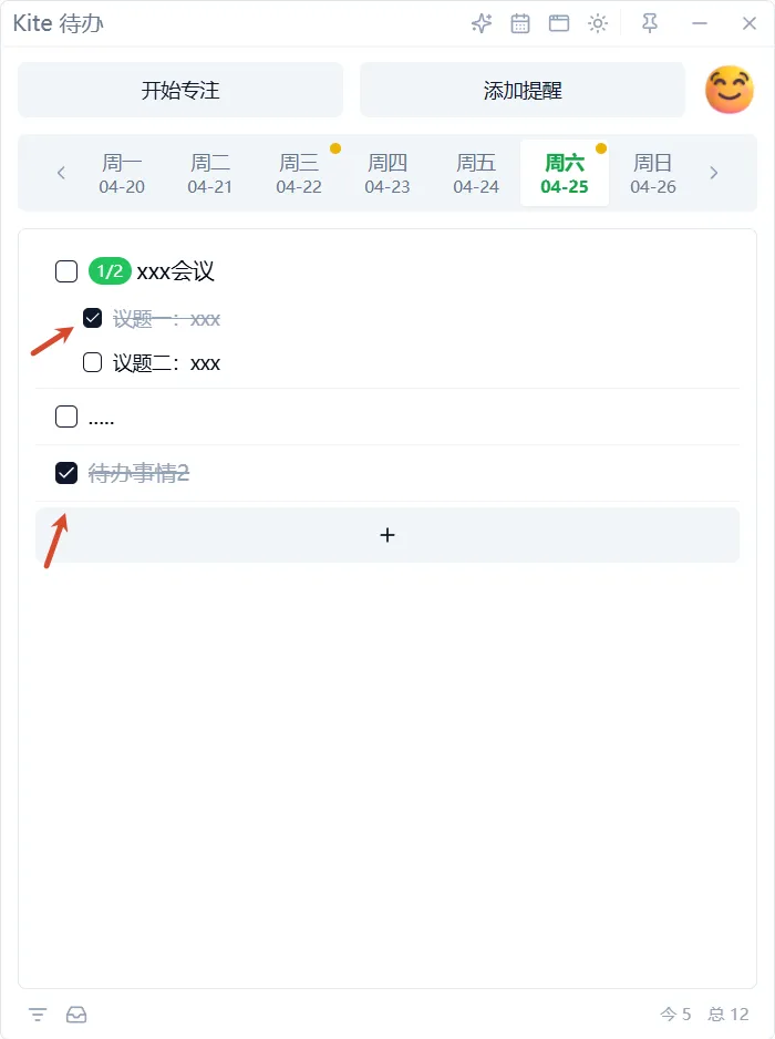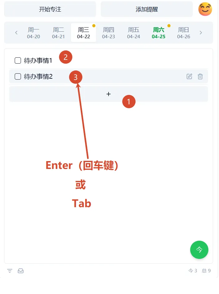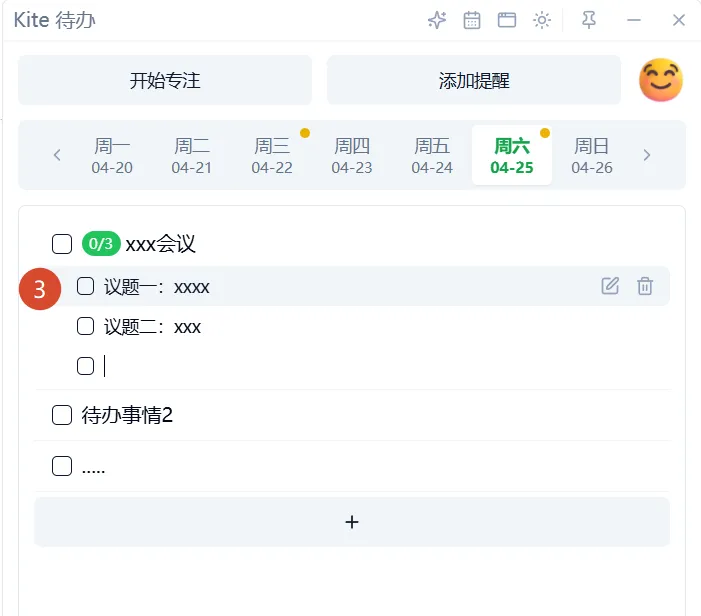 点击【+】(添加子待办)按钮