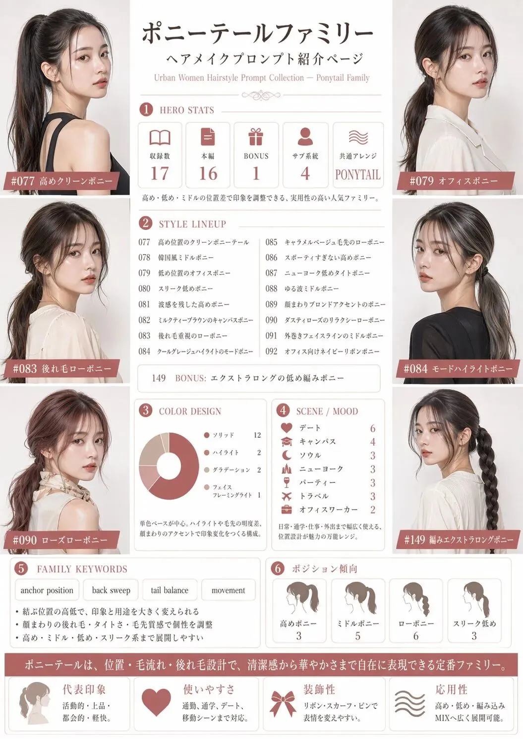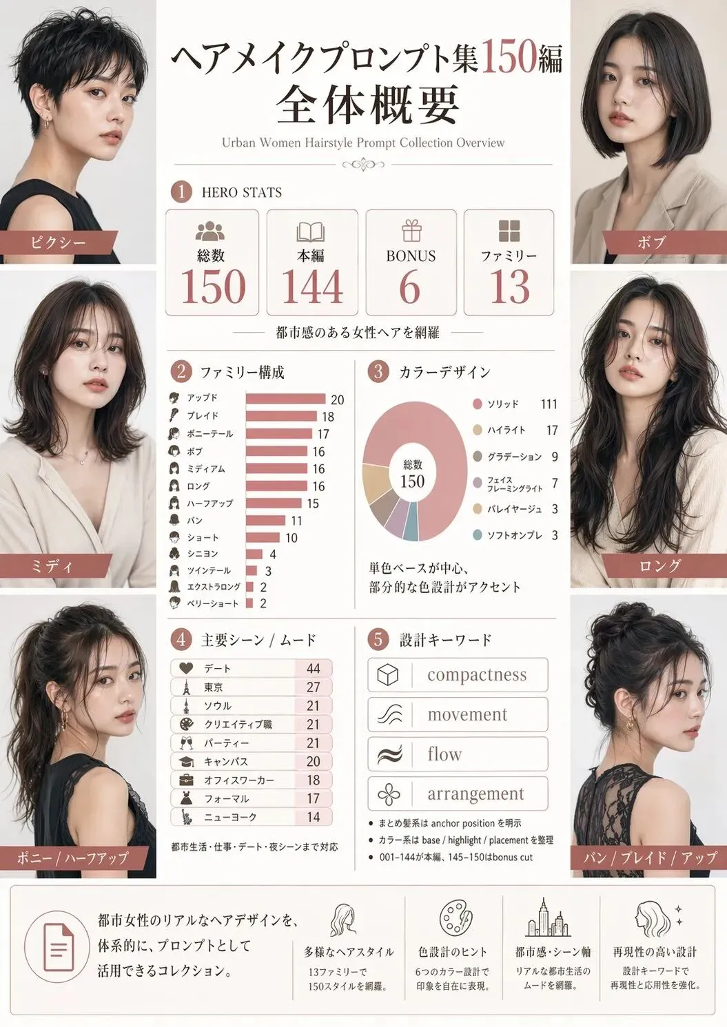 日本AI写真实验室 (@AIPixLab) 经过数月打磨,刚刚发布了 【Urban Women Hairstyle Prompt 150】v6.2 再現性向上版,覆盖从超短发到超长发的150种完整发型,支持市面上主流的所有AI图像模型。