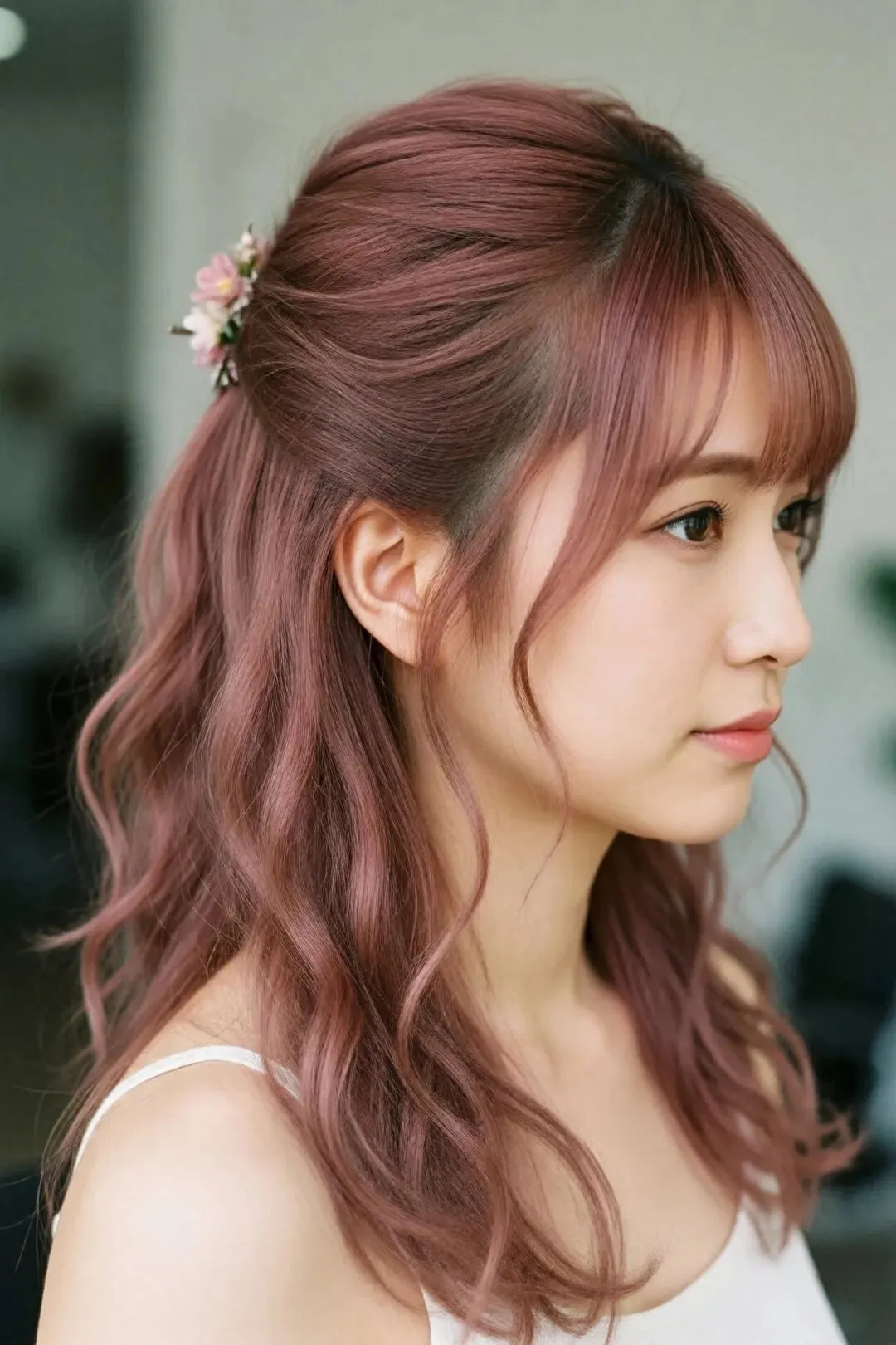 073. 柔和粉棕半扎发