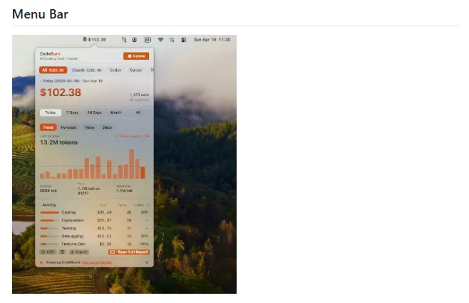 CodeBurn 会把每次代码生成的消耗记下来。