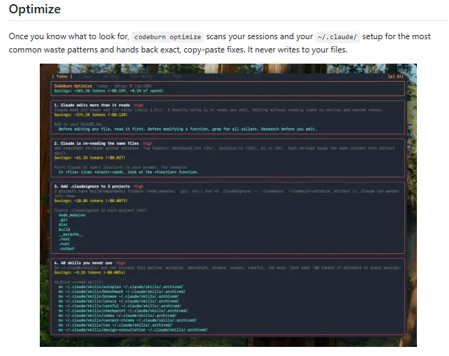 CodeBurn 还塞了一个优化指令。