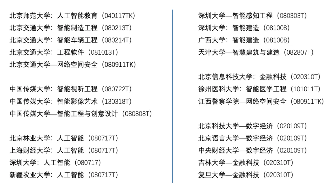 在国内高校中,除典型的人工智能专业外,众多传统学科正悄然迎来转型。一个尤为突出的趋势,是在原有专业基础上增设“智能化”方向:例如“土木工程”逐步发展为“智能建造”,正是传统学科在技术驱动下实现升级与重构的典型体现。