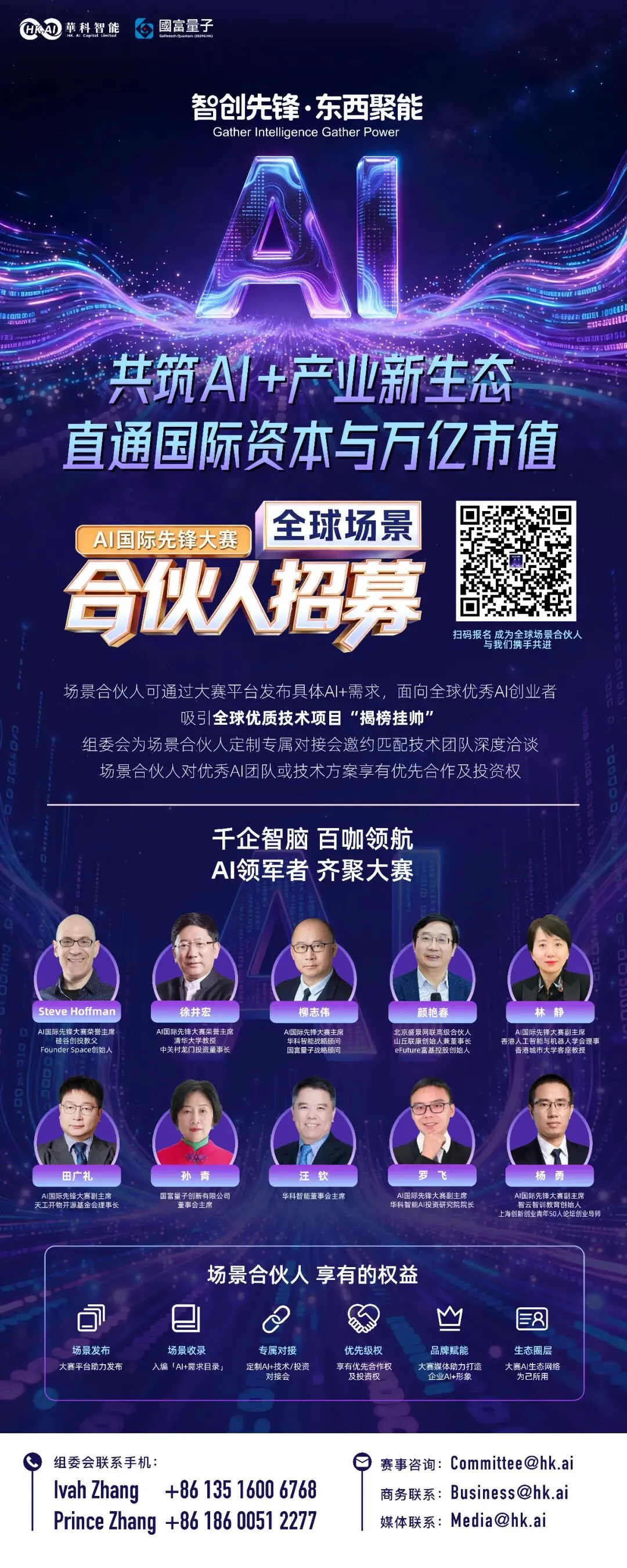 即日起,AI国际先锋大赛以香港为原点,正式拉开全球AI创新竞逐帷幕,以赛事为桥、以生态为基、以开放为翼,链接全球智慧、聚合顶尖资源,让技术突破落地生根,让创新力量跨越山海,为香港人工智能产业发展注入活力,为全球AI普惠发展与文明跃迁贡献力量!