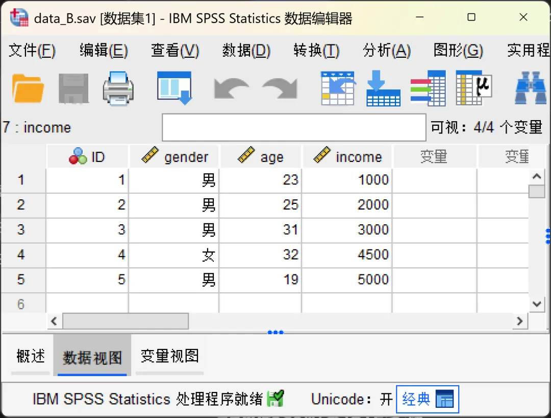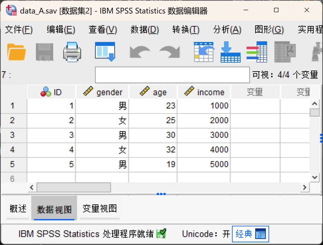 对比完成后,SPSS会在输出窗口和活动数据集同时呈现结果。