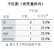 不匹配(按个案排列)表格从“个案维度”汇总有多少条记录存在不匹配。
