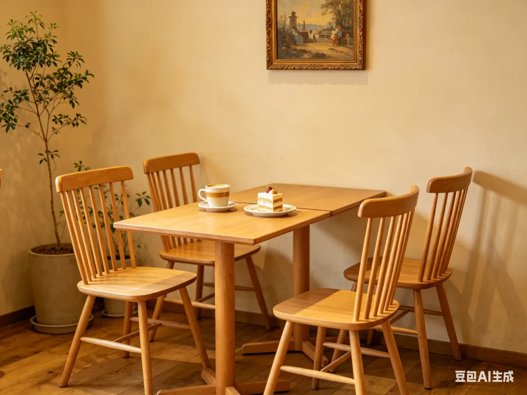 我先用豆包生成了一张日系风格的咖啡馆室内图。