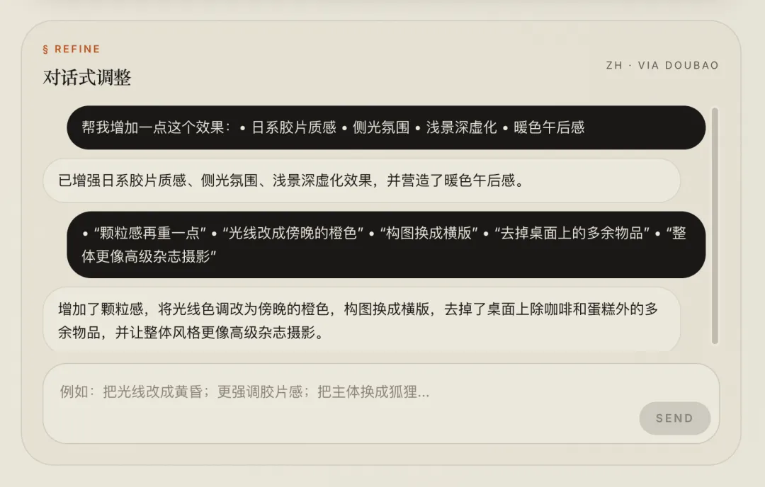 AI 会在原有提示词基础上修改,而不是重新生成一遍。