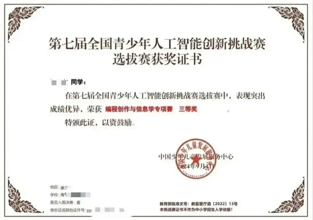 赛事获奖证书是科技特长生招生的必备材料,能有效拓展升学选择、提升竞争优势,主要获得北京十一学校、上海中学、深圳中学等各地重点高中的认可,具体以当地教育部门发布的科技特长生招生政策为准。此外,在自主招生、拔尖创新人才培养等方面(如深圳部分学校),赛事经历也具有重要参考价值。