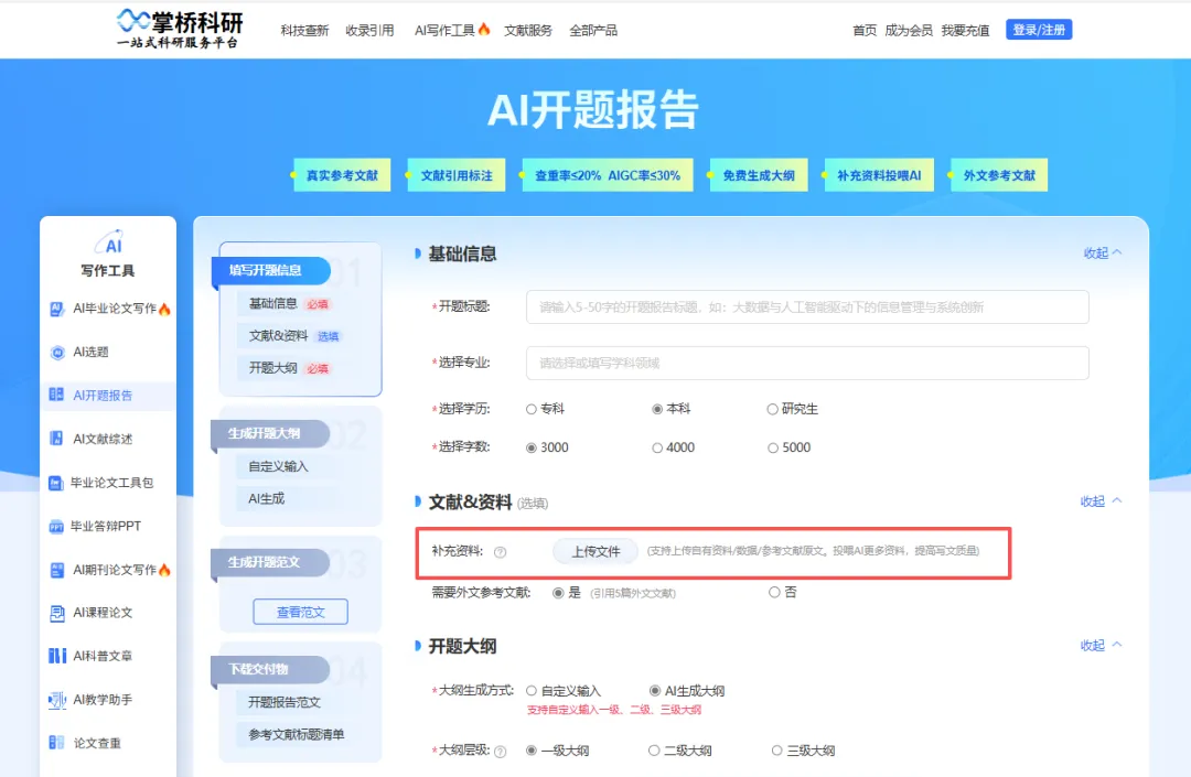 就是借助掌桥科研【AI开题报告】的“补充资料”功能,
