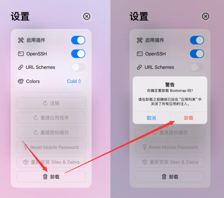 隐藏更多越狱痕迹(越狱前 Bootstrap 设置中启用)