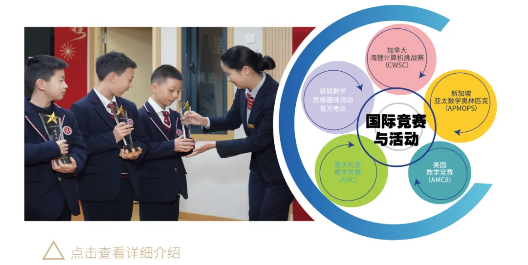 我校为2026 Math Kangaroo袋鼠数学思维趣味活动官方考点,同时开设加拿大海狸计算机挑战赛(CWSC)、新加坡亚太数学奥林匹克(APMOPS)、美国数学竞赛(AMC8)、澳大利亚数学竞赛(AMC)等多项国际顶级学科赛事,为学生搭建一站式国际竞赛培养体系,全面提升逻辑思维、创新能力与国际竞争力。