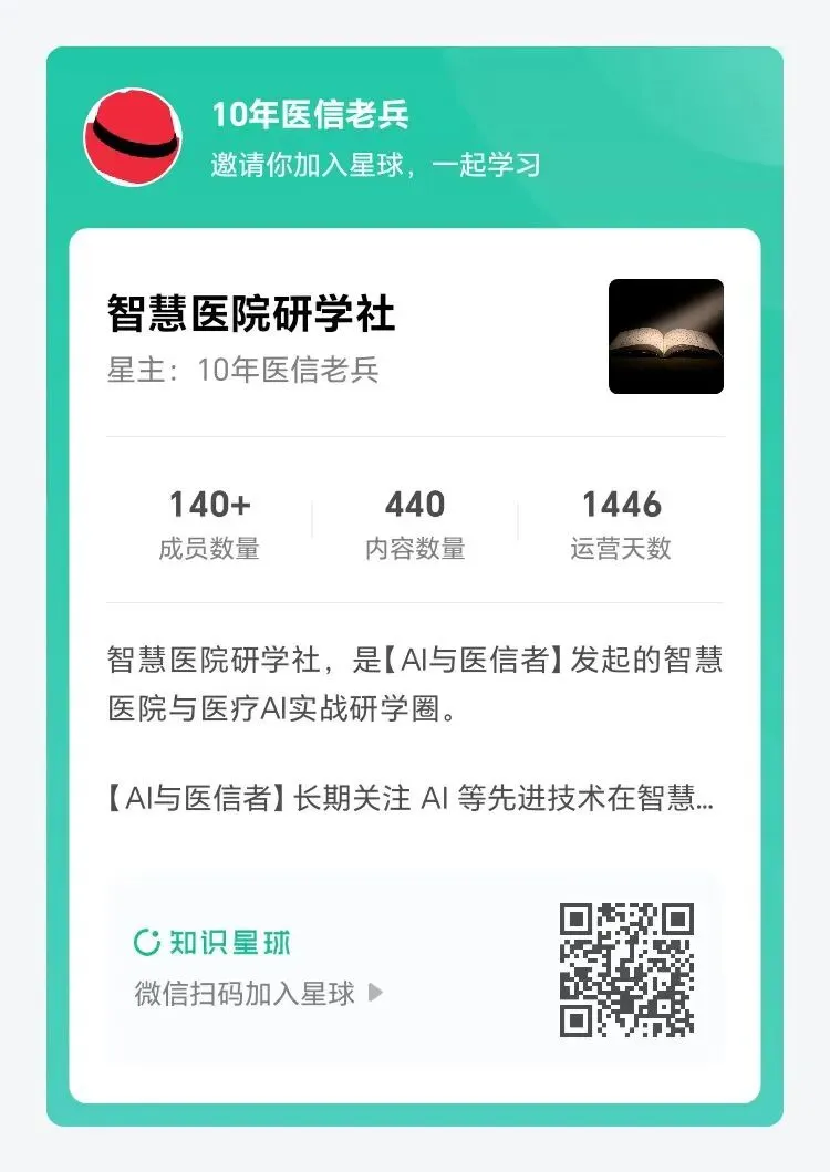 如果你也在关注智慧医院、医疗AI、信息科转型和医院数字化建设,欢迎加入智慧医院研学社!!!