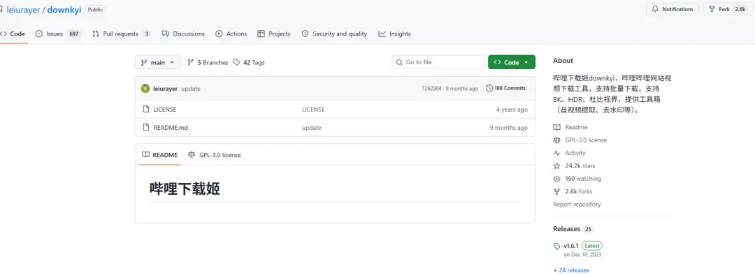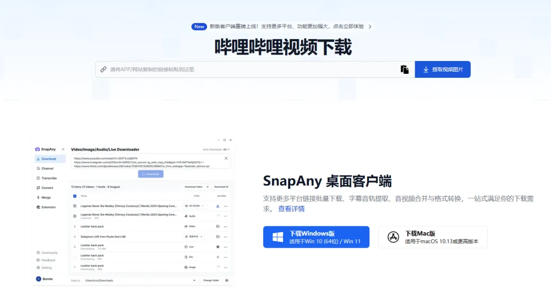 支持字幕下载、音频提取、封面下、支持 UP 主全作品、合集、收藏夹批量下载,支持导出 MP4、FLV 等格式。