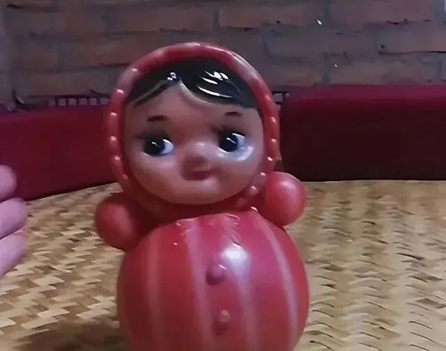 图中这个胖墩墩的小家伙叫不倒翁,一身红壳子,鼓鼓的像个熟透的柿子,黑头发大眼睛,脸蛋儿画得有点憨气,搁柜台上一排,小孩路过脚步都慢下来忍不住伸手碰,就看它晃晃悠悠,咣当咣当地转几圈,愣是怎么也摁不倒,小时候家里谁要能买回来一个,能一下午围着拨来拨去,邻居小孩还逗着问“你咋总乐呢”,那时候可没什么电子玩具,一个会晃的不倒翁就让人盼好多天,真不觉得腻。