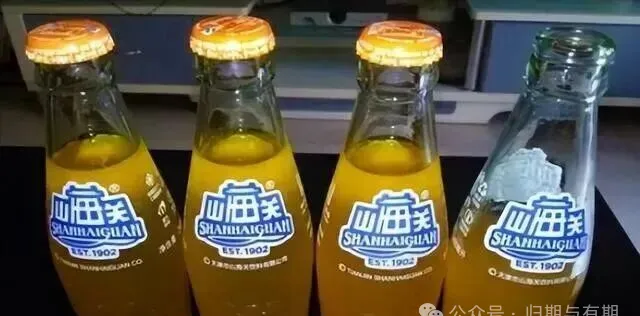这个橙黄透亮的瓶子就是玻璃汽水,窄长的玻璃瓶,瓶盖铁皮压紧,标签一看就熟悉,小时候喝果汁汽水不容易,天热出汗多了,大人才舍得给买上一瓶,撬开瓶盖,“啪”一声都能把隔壁小孩的眼睛吸过来,每次都要抿着小口慢慢喝,怕喝得快了不够分,全家分着喝,一边喝一边闻那橘子味的汽泡,有时候屋里来客人,奶奶说“把橙子水开了”,自己就靠边站,盼轮到那一口,真要说满足感,现在的饮料再多也比不上当年那几口汽水的美。