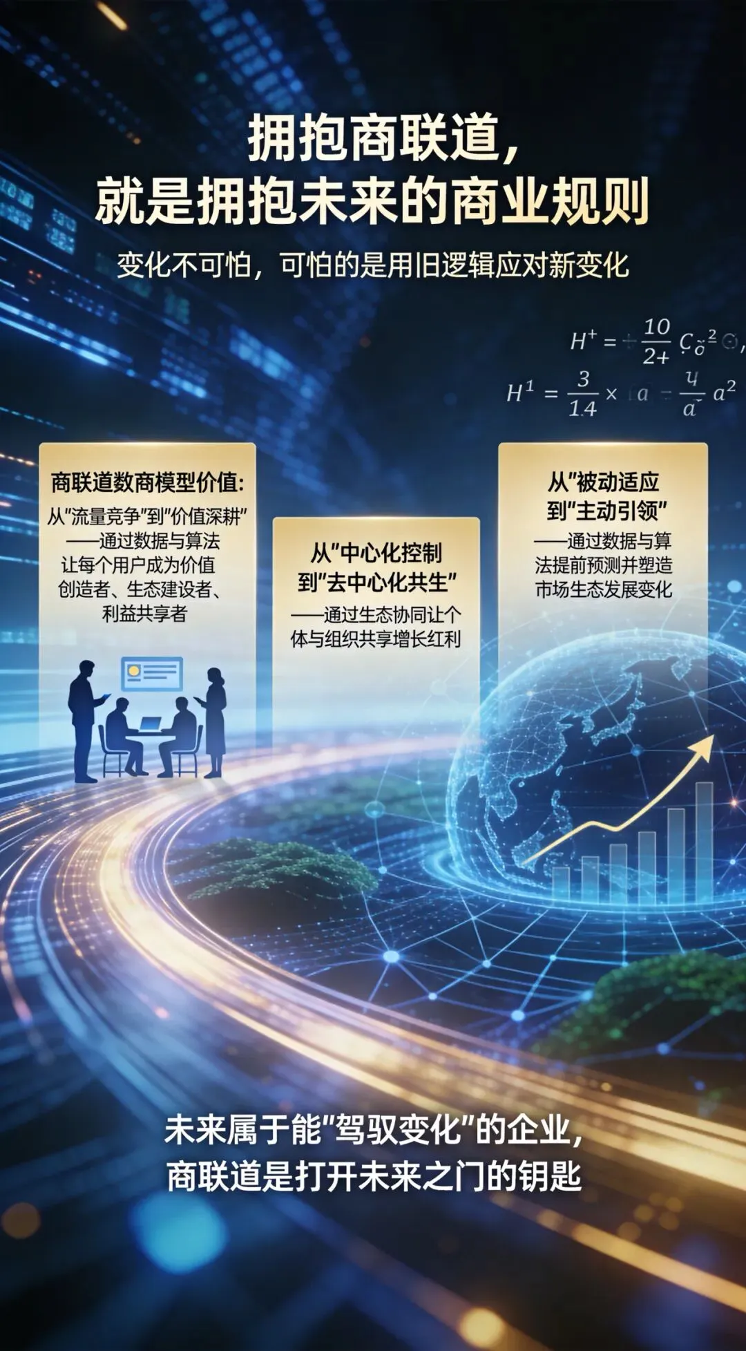 拥抱变化,就是拥抱商联道。它不仅是一种模型,更是一种思维——一种从“对抗变化”到“驾驭变化”,从“追逐流量”到“深耕价值”,从“封闭竞争”到“开放共生”的思维,从“一人消费”到“众人受益”的商道精神。