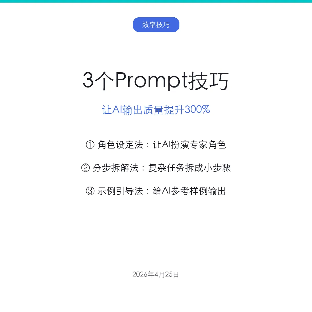 :使用「角色设定法」让输出更专业,例如:“你是一位资深产品经理,请帮我分析…”