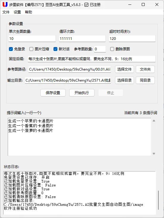 所有参数(提示词、参考图路径、生成数量等)自动保存至本地,下次打开软件无需重新设置,直接复用历史配置,尤其适合固定风格的长期创作。